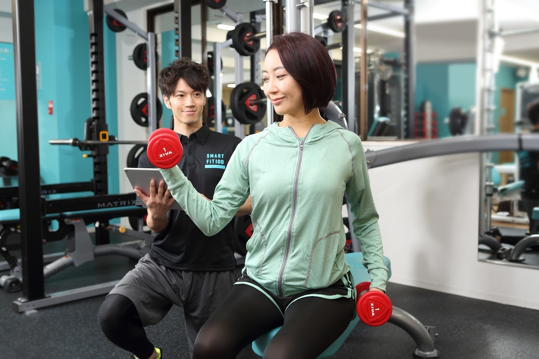 スマートフィット100は、「フィットネスを身近に」することを経営理念に掲げ2015年に創業した、お手頃価格で24時間利用できるフィットネスジム・フランチャイズです。現在、関東を中心に35店を展開、会員数は2万人を突破、外からトレーニング風景が見える立地に加え、スマ100ブルーとホワイトの明るいブランドカラーは女性に支持され24時間フィットネスジムの中でも、女性比率が高いのがスマ100の特長です。
