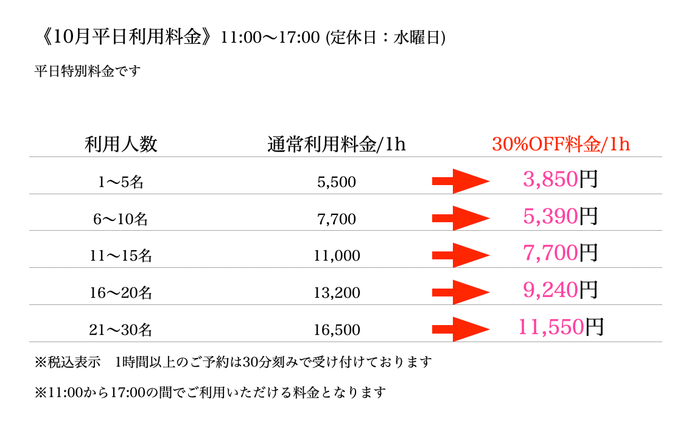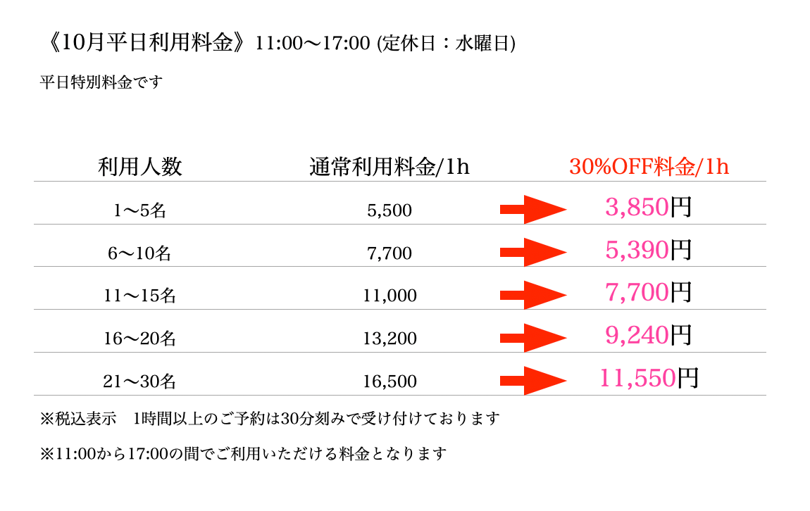 ★平日は1時間からご予約可能に!(通常は2時間からご予約受付)