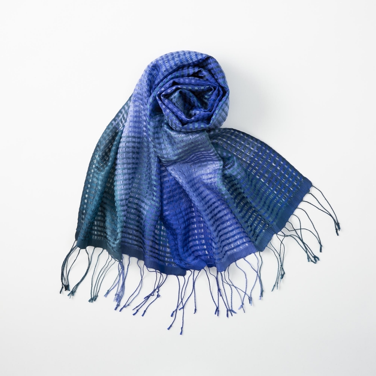 ・艶やかな輝き放つ、手織りの極上シルクストール(MEKONG BLUE)/カンボジア