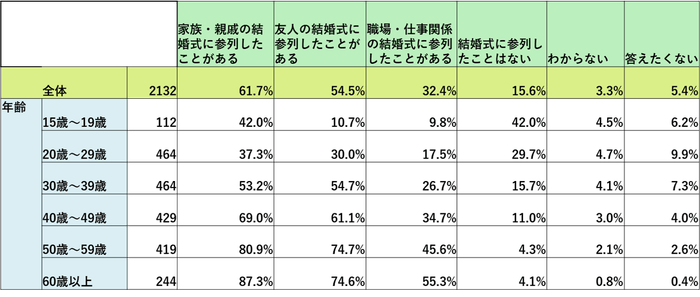 ・調査対象 :16~79歳、男女、過去1回以上結婚式に参列経験のある方