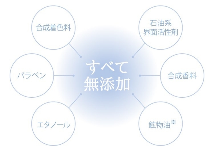 敏感な肌への刺激になりやすい「界面活性剤」や「アルコール、エタノール」などの清涼成分、「合成香料」や「着色料」などは無配合。