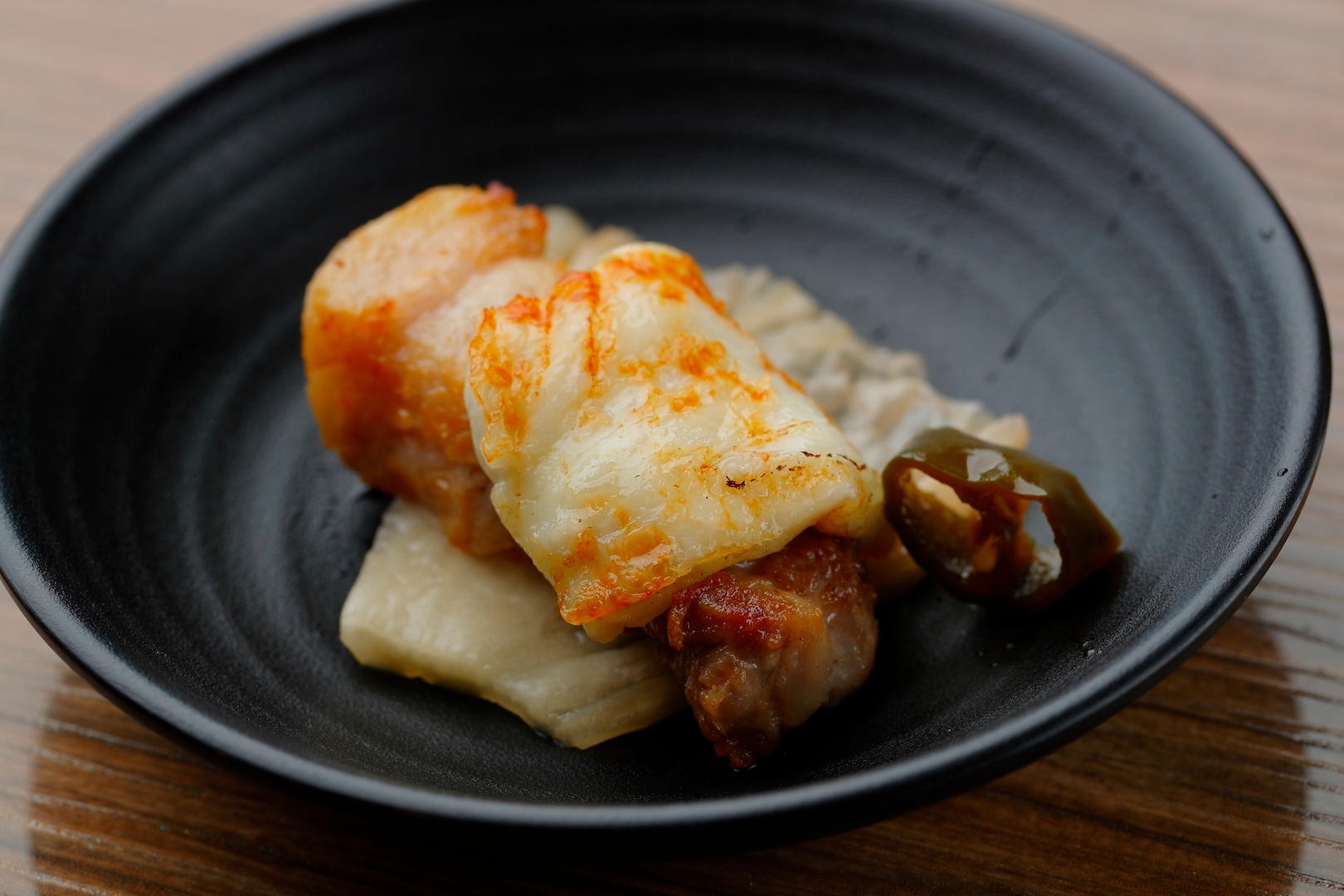 軽く焦げ目がつく程度に焼いて食べると、外はカリッと香ばしく、中はトロ~リとろけたチーズに。このように焼くことによって、チーズの風味が増すばかりでなくチーズそのものの美味しさをまるごと味わっていただけます。熟成肉専門店ヨプの王豚塩焼の看板メニュー、熟成サムギョプサルとの相性も抜群!