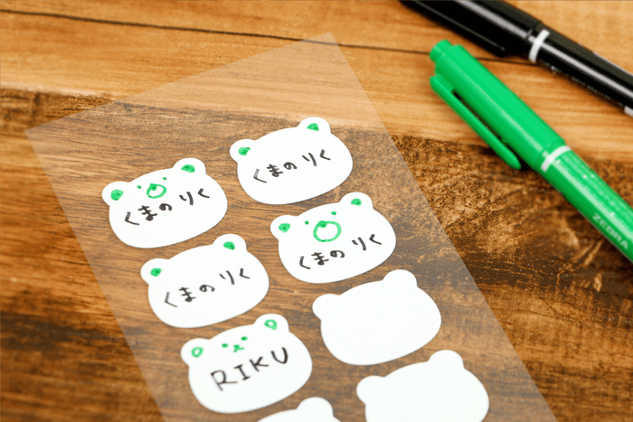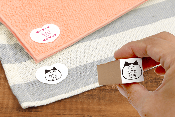 《SDGs商品》ご好評のため“猫・くま・ハート”のカタチを追加!2年かけて開発した素材から誕生の名前スタンプが押せる布用シールです。(布に指で貼ることができる「布ハレちゃん。のキレハシ」使用) | NEWSCAST