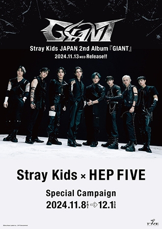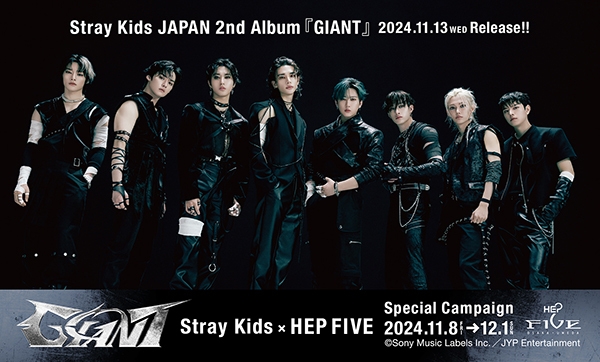 大阪梅田のファッションビルHEP FIVEでは、2024年11月8日(金)~12月1日(日)の期間、世界的な人気を誇るK-POPボーイズグループ・Stray KidsのJAPAN 2nd Album『GIANT』のリリースを記念して「Stray Kids×HEP FIVE Special Campaign」を開催いたします。