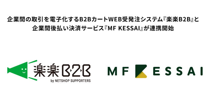 株式会社ネットショップ支援室(本社:東京都新宿区、代表取締役:泉 成人)が提供する、企業間の取引を電子化するB2BカートWEB受発注システム『楽楽B2B』は、MF KESSAI株式会社(本社:東京都千代田区、代表取締役社長:冨山 直道 )が提供する企業間後払い決済サービス『MF KESSAI』との連携を2020年7月27日(月)に開始しました。