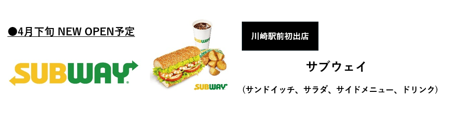 全国に展開する世界最大級のサンドイッチチェーンが、川崎駅東口初出店。