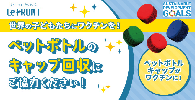 川崎ルフロンでは、SDGs活動の一環として館内に「ペットボトルキャップ回収BOX」を設置しております。