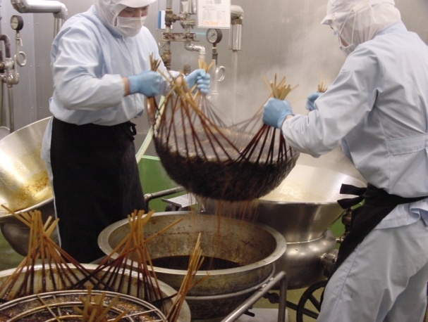 ●先代の教え、「良い甘露煮は良い原料でないと作れない」を頑なに守り、甘露煮に最適な時期に仕入れた原料の鮮度を落とさぬよう、氷を使用し素早く加工していきます。