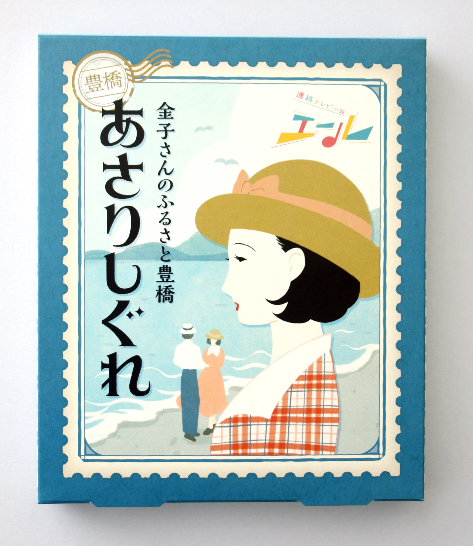 パッケージは、福島の海、豊橋の海を見つめて思いを馳せる二人、頻繁に交わされた文通をイメージして切手風にデザインしました。