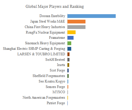 YHResearch トッププレーヤー研究センターによると、核電用鍛造品のグローバルな主要メーカーには、斗山エナジー、日本製鉄、中国第一重工、RongFa Nuclear Equipment、Framatome などがあります。2024 年、グローバルトップ 5 社の収益シェアは約 49.0% でした。そのうち、ドゥサン・エネルビリティは2024年に20%を超える市場シェアを保有する世界最大の生産者です。