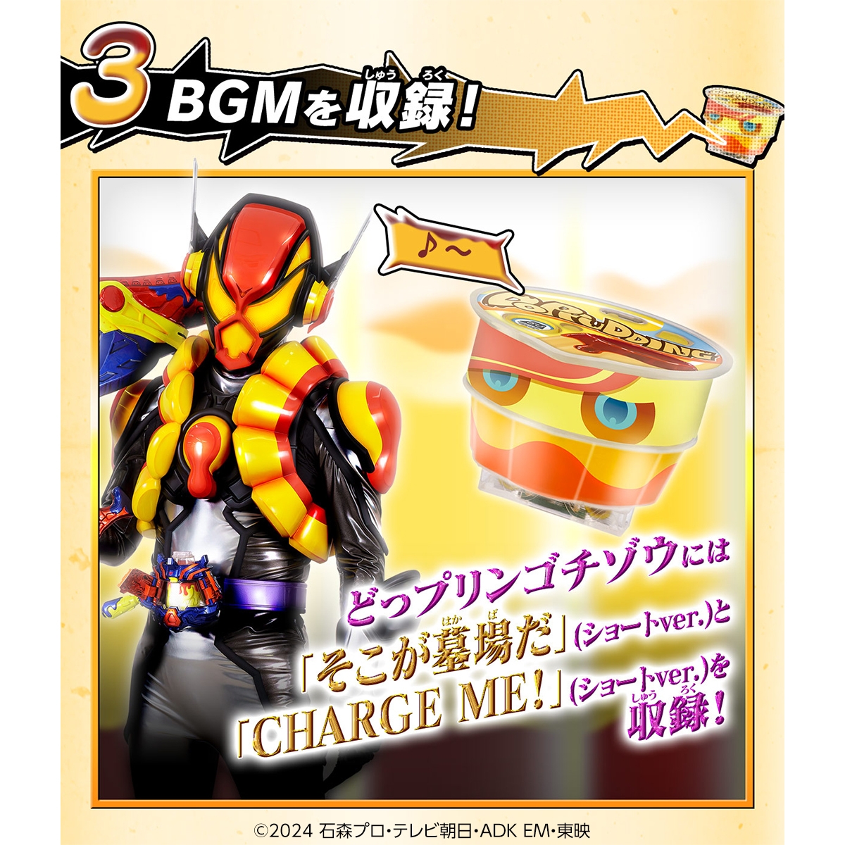 『仮面ライダーガヴ』より、「DXおしゃべりゴチゾウ」シリーズの最新作として、「DXおしゃべりゴチゾウセット07」を商品化いたします。本商品には、仮面ライダーヴラムがプリンカスタムへの変身に使用する「どっプリンゴチゾウ」と、ゼリーカスタムへの変身に使用する「ぷるゼリーゴチゾウ」を収録。通常DX版のライダーゴチゾウシリーズから全パーツを新規造形することで音声ユニットを搭載し、様々な音声が発動可能となりました。