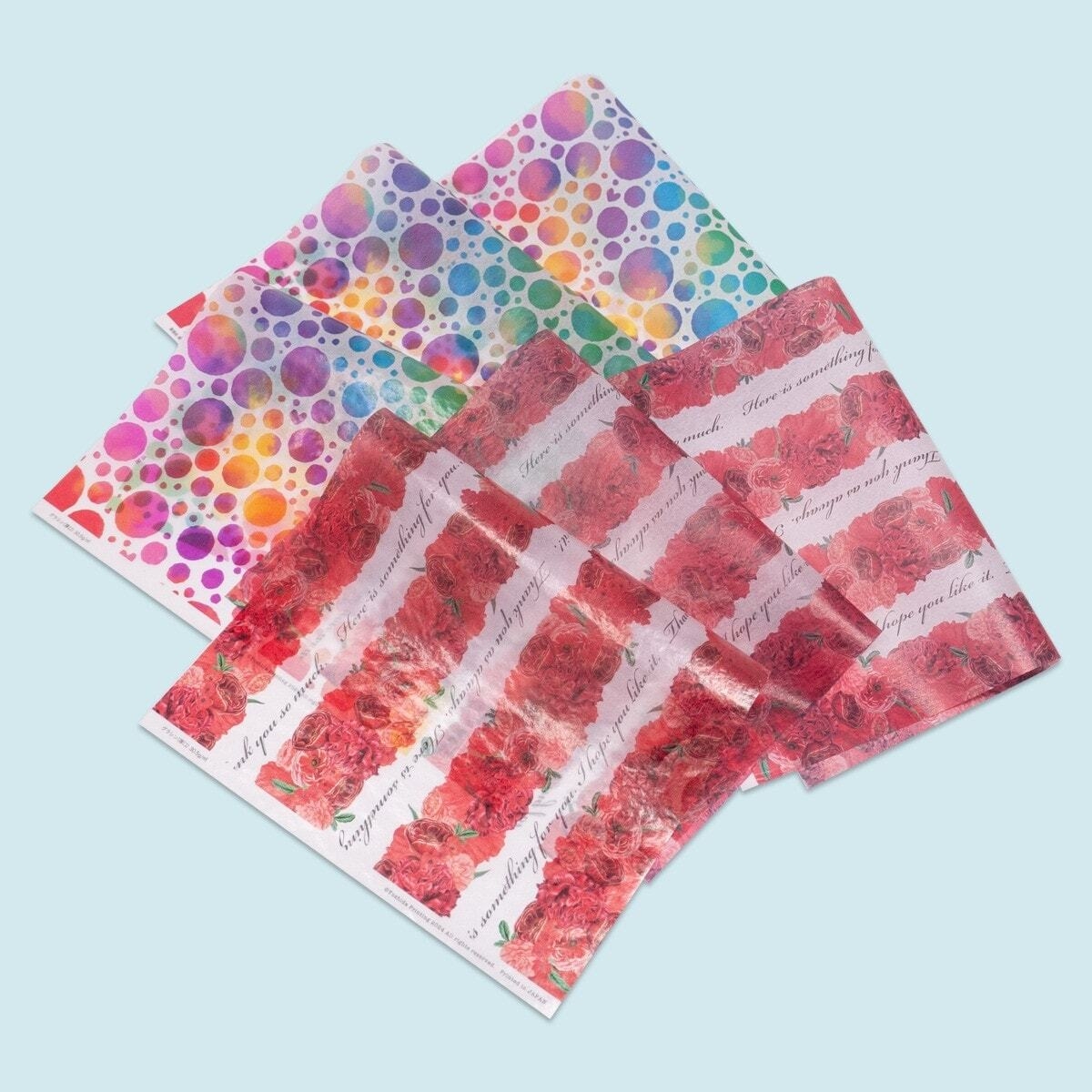 ●薄紙印刷サンプル(A4サイズ):カラフルな柄を印刷した6種類の薄紙素材