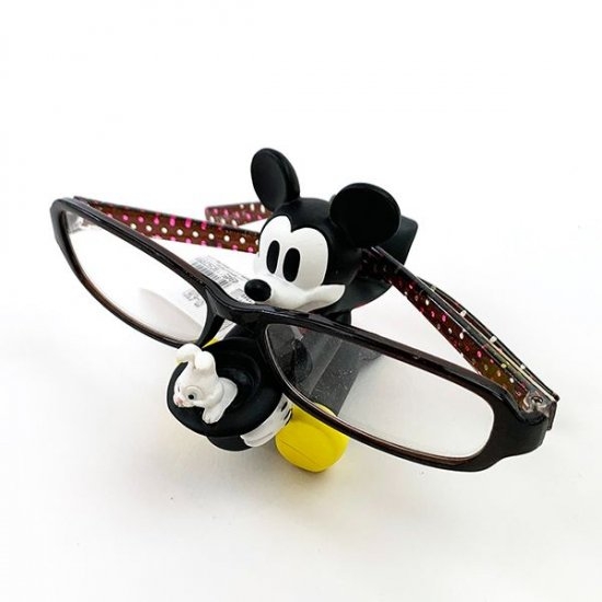 実際にメガネを置いてみるとこんな感じ♪ミッキーの腕とマント部分がしっかりメガネを支えてくれます。