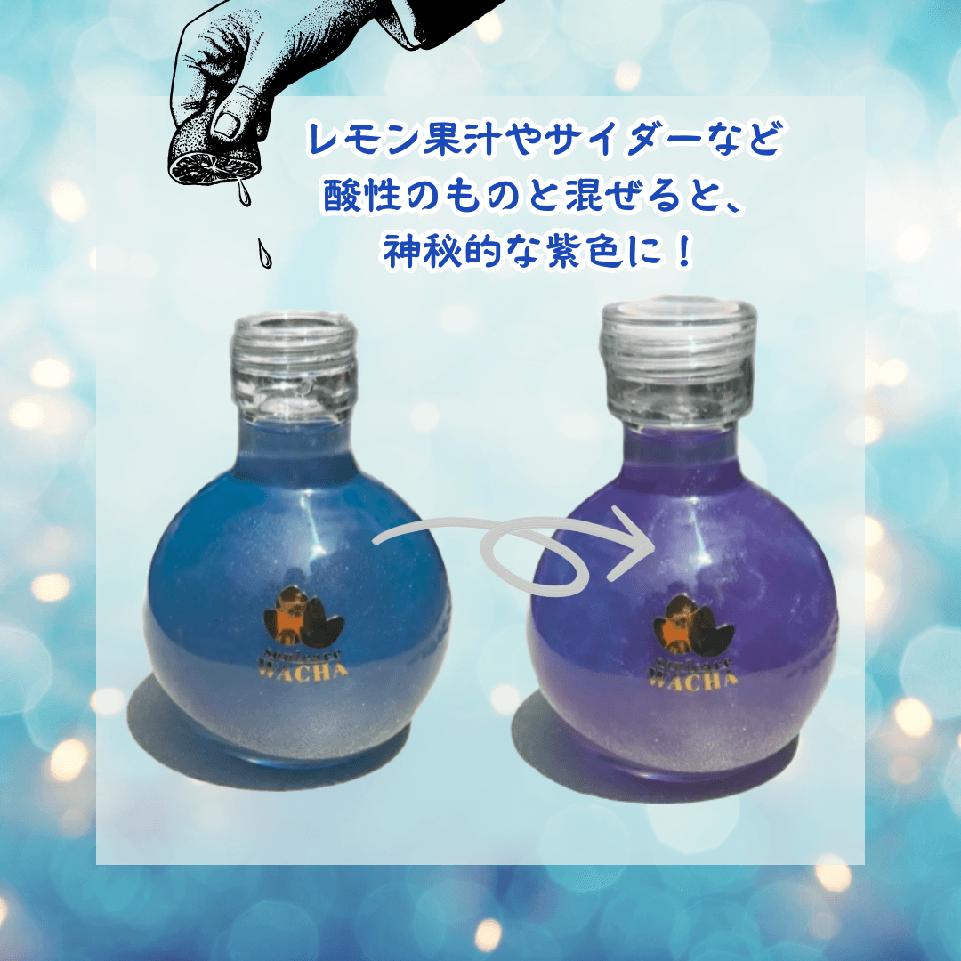 レモン果汁やサイダーなど酸性のドリンクを加えると、ブルーが幻想的なパープルへ変化。見た目も味わいも変化する「魔法の抹茶体験」は、SNS映えや夏のホームパーティーにもぴったりです。