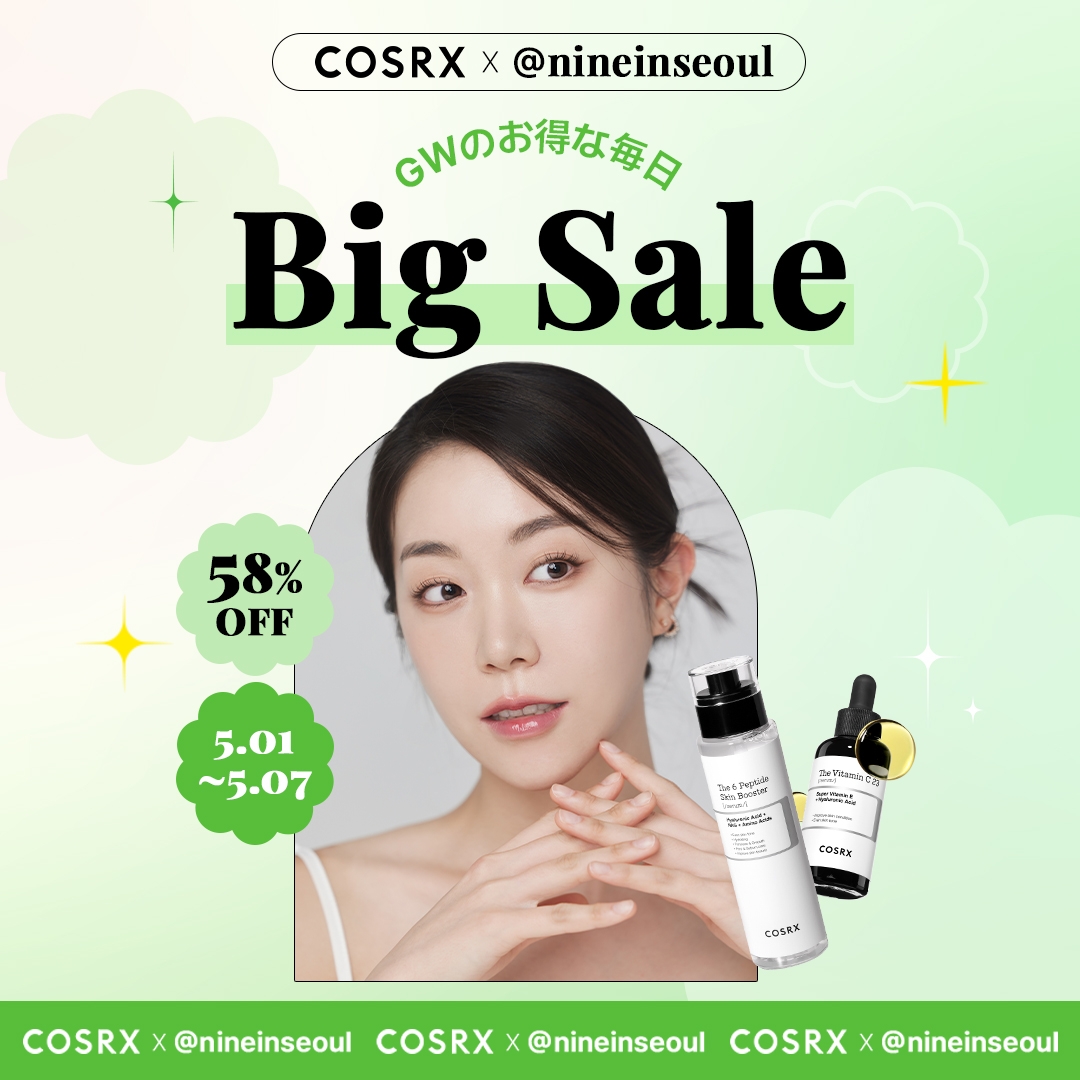 春の乾燥肌にお悩みの方は注目!COSRX Qoo10 BIG SALE 最大58%OFF!人気インフルエンサーNine beautyとコラボ販売へ!