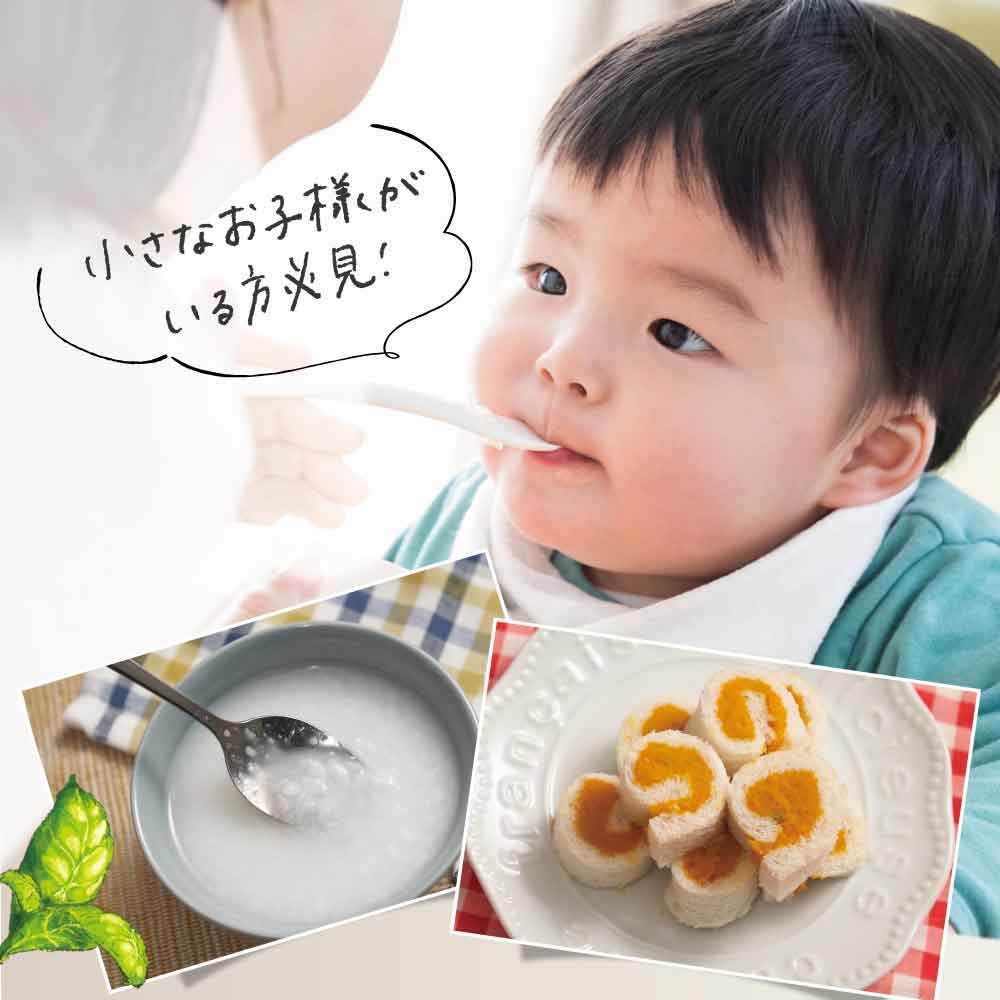 10倍粥や野菜のペーストなど、小さなお子様が食べやすいごはんも簡単に手早く作ることができます。新米ママに嬉しい栄養士監修の『離乳食レシピ』付き!