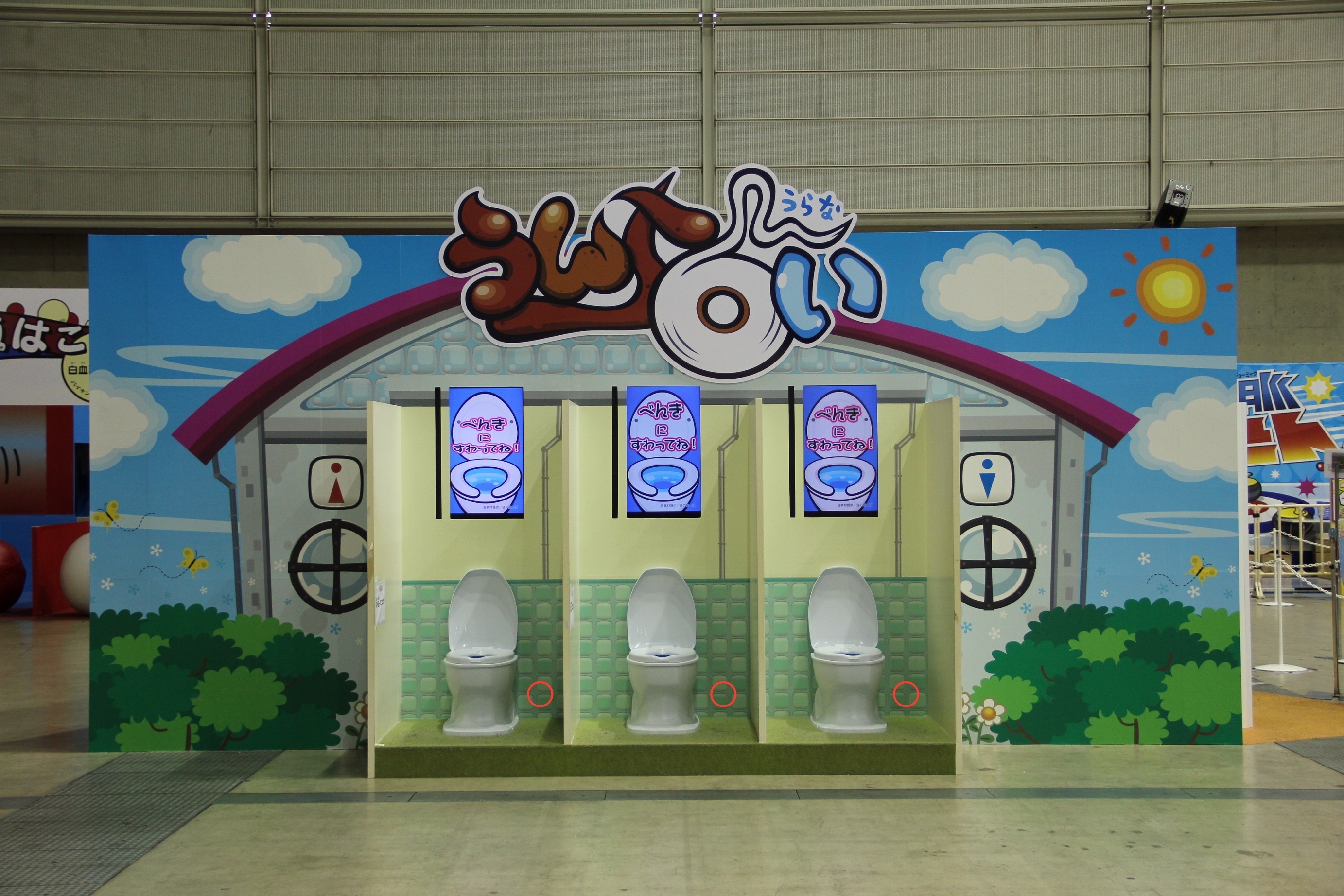 リアルな便器に座るとその日の運勢を表すうんちキャラがモニターに登場!きみのうんち具合はどうかな?