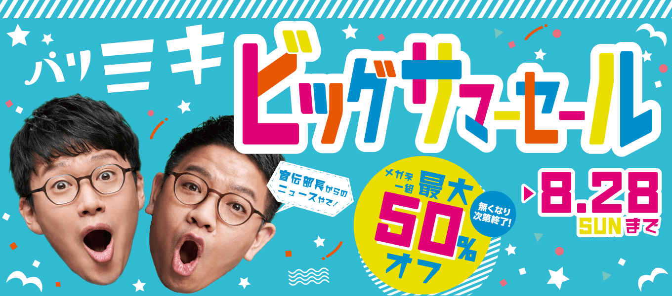 超うす型単焦点レンズ・遠近両用レンズも選べる!メガネ1組最大50%OFFコーナーをご用意。無くなり次第終了となりますので、お早目にご来店ください!