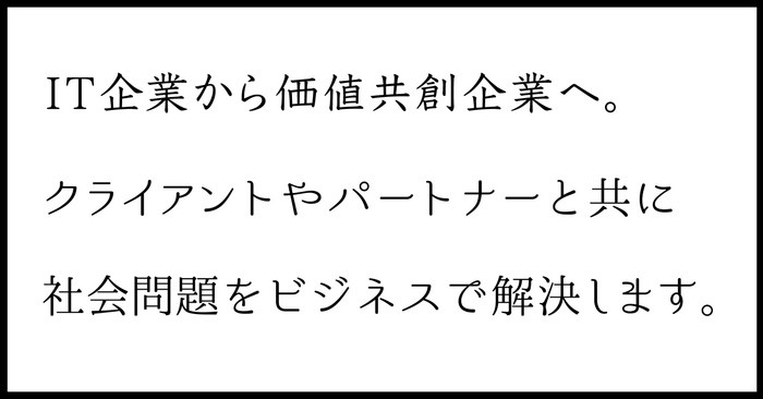 当社は、これまでSaaS・ASP事業を中心に盤石なストック型の収益を築いて参りました。そこから更なる成長を目指し、「クライアントと共に社会問題をビジネスで解決する、価値共創企業」への展開計画を、2019年8月14日開示の中期経営計画で発表いたしました。当社が培ってきた3つの能力(「真の課題を探り出す能力」「リソースの埋もれた価値を炙り出す能力」「課題とリソースの最適な組み合わせを提案・実行し価値を最大化する能力」)をもとに、国内の民間企業だけでなく、国内外の民間・政府・自治体へサービス提供を行う計画です。