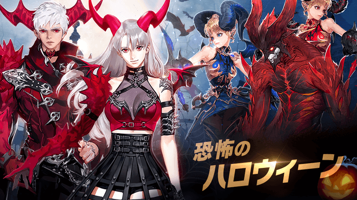 セイヴィア「魔界貴族スキンパック」、レイヴン「インフェルノクロウスキンパック」、ニキ「 青い魔王少女スキンパック」、ティキ「赤い魔王少女スキンパック」、装備スキンをまとめた「魔界貴族武器スキンパック」の販売です。