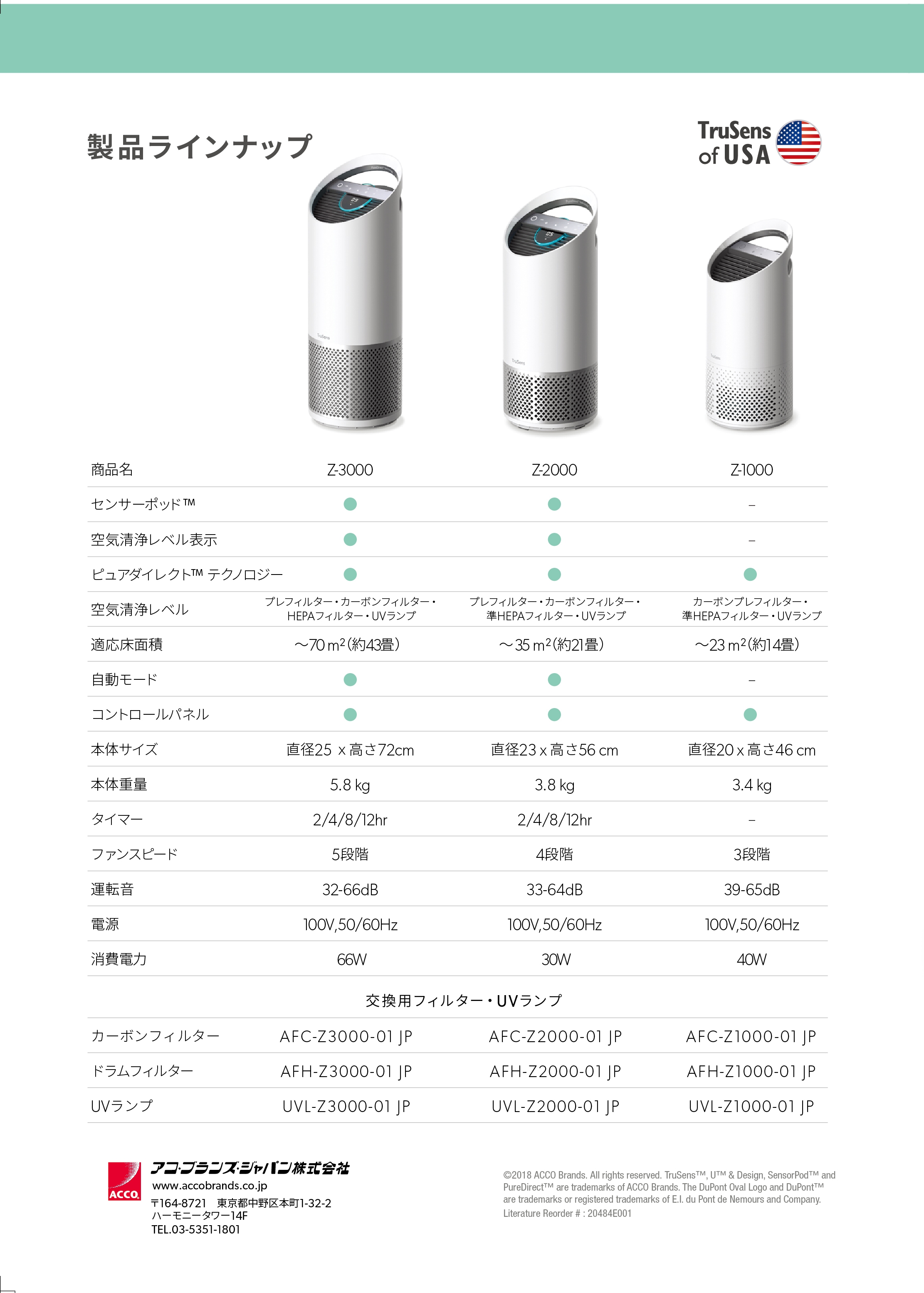 アコ・ブランズ・ジャパン株式会社(本社:東京都中野区、代表取締役社長:宮坂 哲也)は、アメリカで新たに誕生した新ブランドTruSens(TM)(トゥルーセンス)より、部屋の中の狙った場所の空気をクリーンにする空気清浄機、TruSens空気清浄機シリーズを2019年3月10日より発売します。