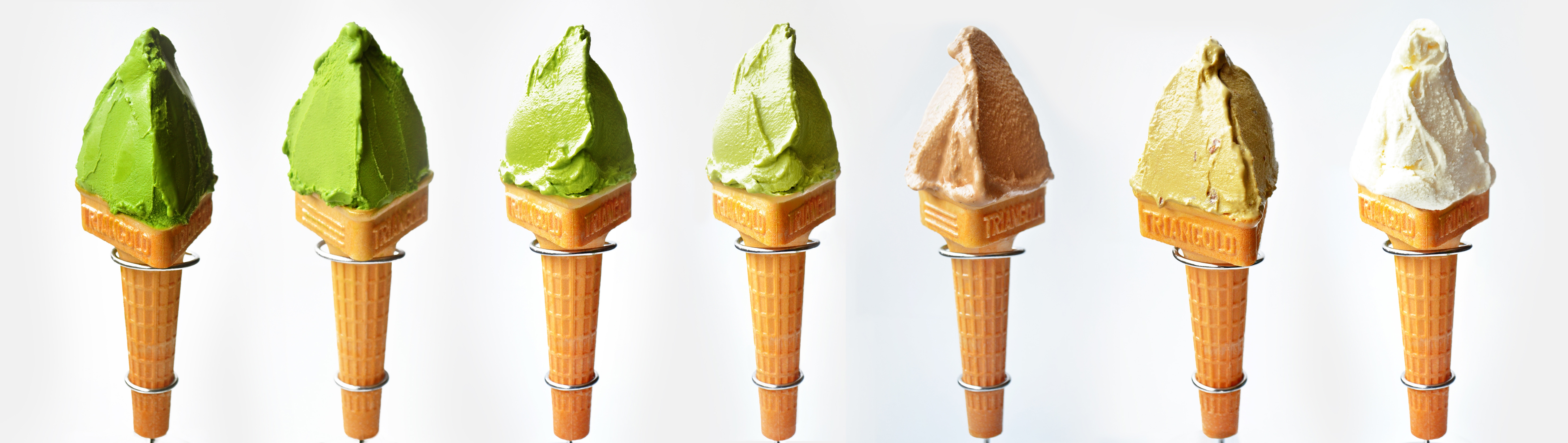 現在、本格濃い抹茶・クリーミー抹茶ラテ・さわやか本山緑茶・花香るジャスミン茶・ダージリン紅茶・ほうじ茶ラムレーズン・贅沢バニラの定番7商品のほか、一番人気の本格濃い抹茶に金箔を贅沢にあしらった『金の濃厚抹茶』の計8種類のジェラートを販売しております。