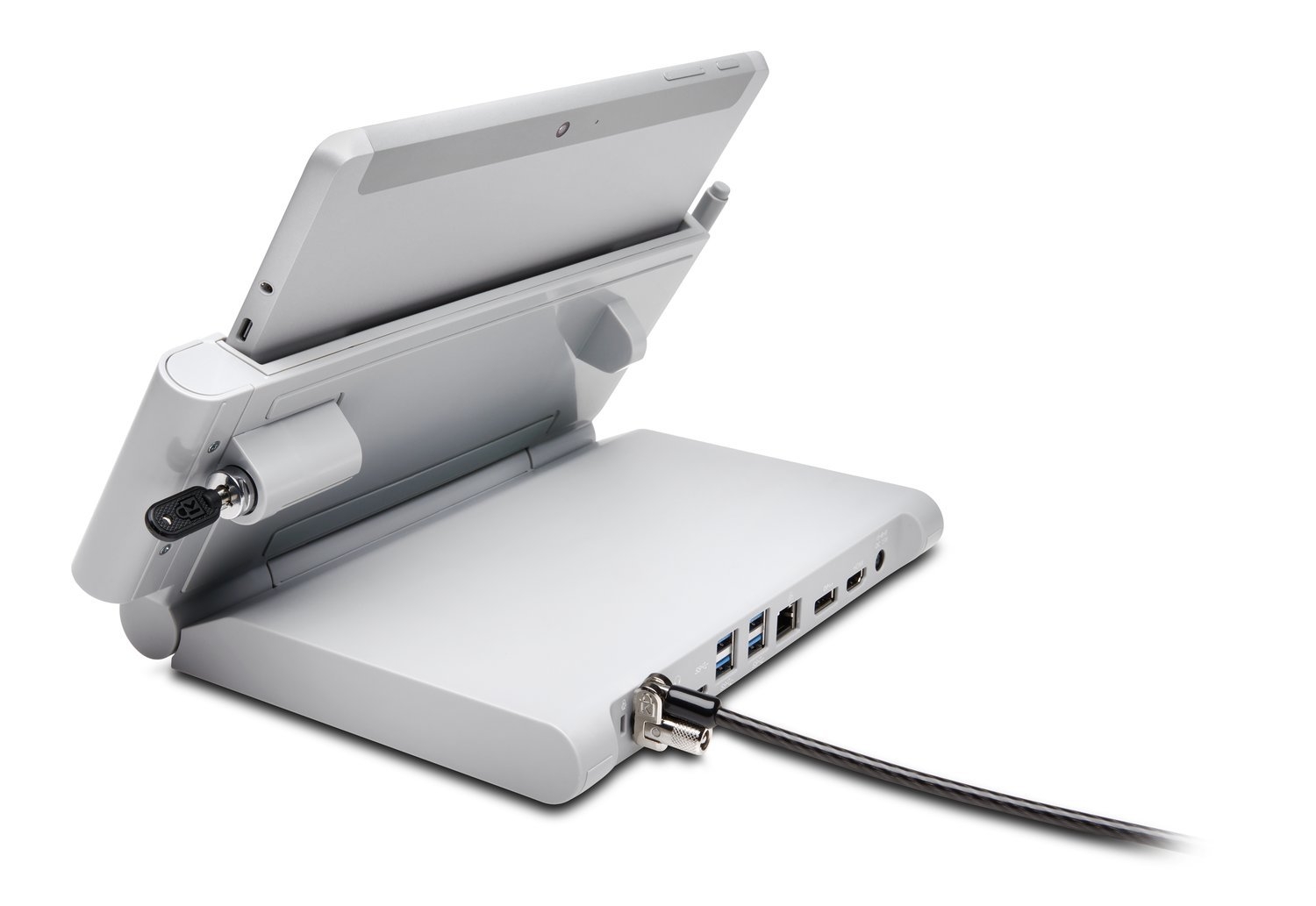 別売りのK62918JPSurfaceドック用ロックで、Surface Goディバイスをドックに施錠し、かつ同じ鍵でドックの施錠管理もすることができます。