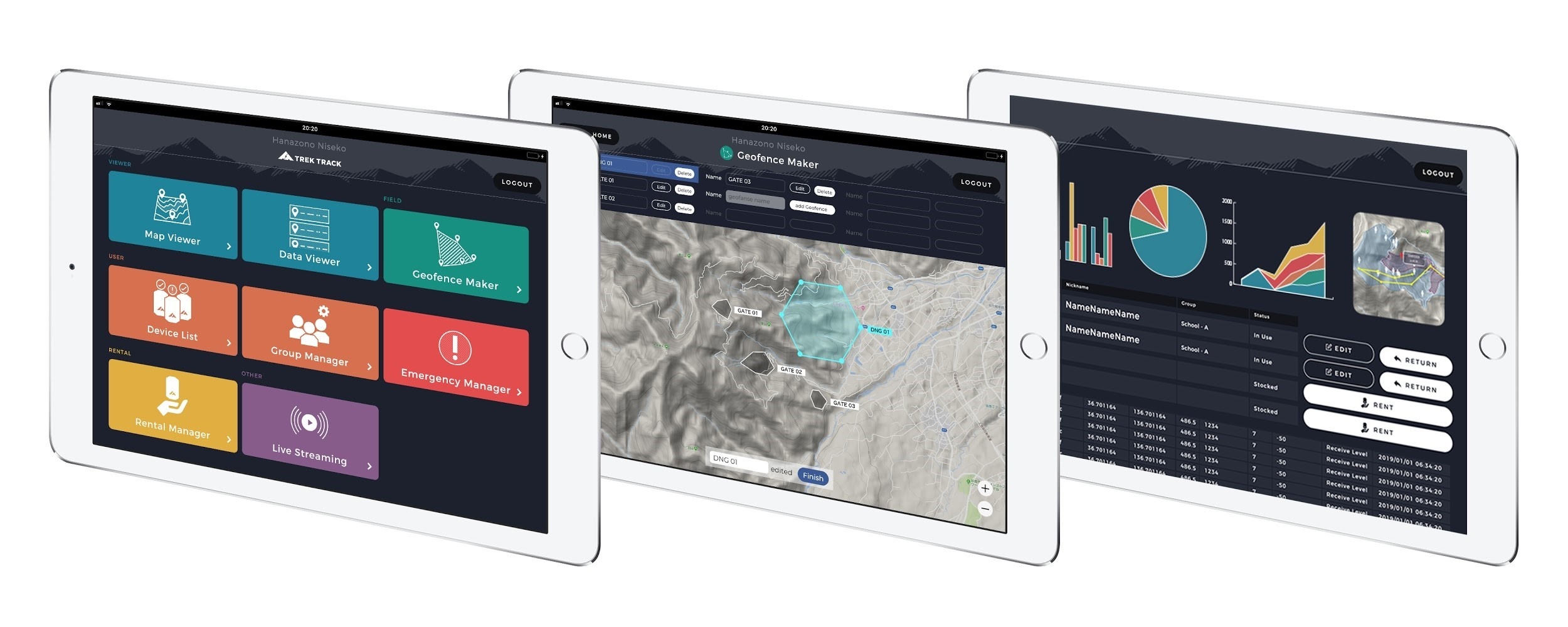 山岳遭難対策として活用してきた「TREK TRACK」の位置情報可視化技術を応用し、スキースクールに参加するインバウンドを含めたファミリー層への安心・安全な運営支援を実現。収集データを活用したオペレーションの最適化と見守りによるホスピタリティ向上でサービスの差別化を実現します。ニセコHANAZONOリゾートでは、「The Hanazono Shield by TREK TRACK」としてスキースクールに導入。スクールに参加するお子様がデバイスを携帯することで安心・安全なスキースクールの運用管理体制の構築を支援いたします。