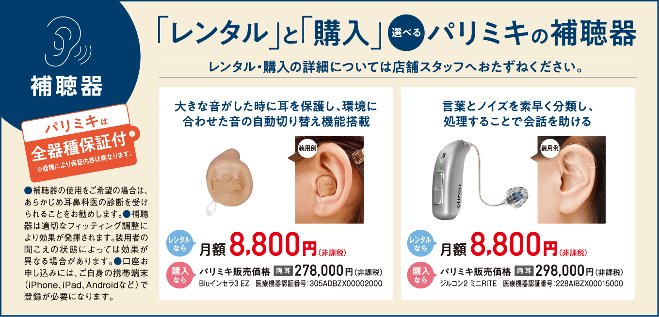 ■「レンタル」と「購入」 選べるパリミキの補聴器