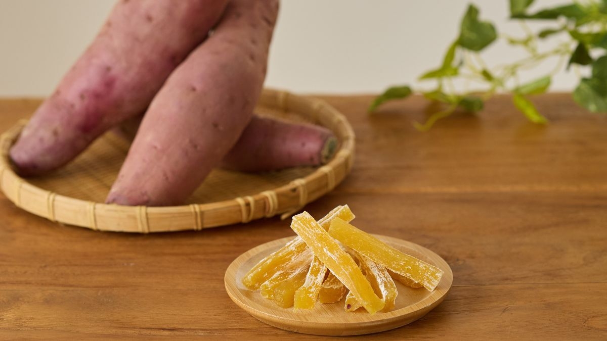 さつまいも産出額第1位の茨城県産紅はるかを使用したしっとり食感の干し芋です。収穫後、約1カ月以上低温貯蔵したさつまいもを加工しています。時間をかけて熟成したことで、蒸しただけのさつまいもと比べてカリウムが約2倍に。水分を丁寧に飛ばして作られたことで栄養価と本来の甘みがより凝縮された濃厚な味わいとなりました。保存料・砂糖・着色料・香料は一切使用していないので、アレルギーが気になるお子様のおやつや、大人の間食にもおすすめです。