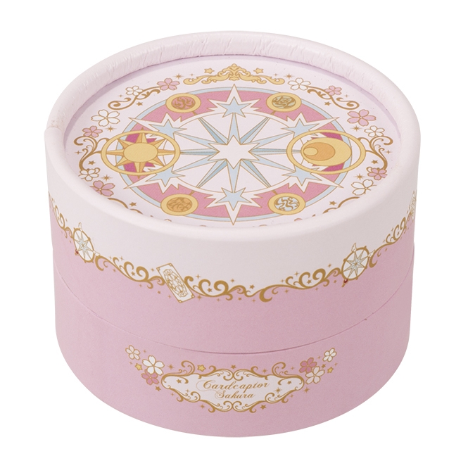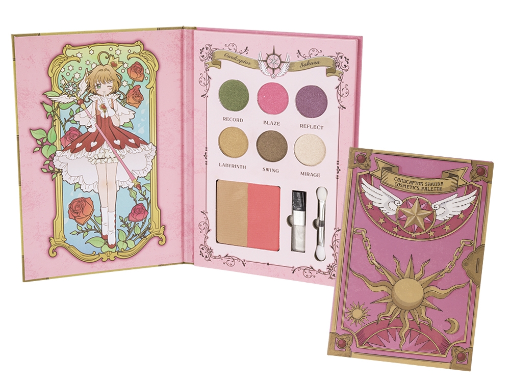 魔法の本風のデザインが乙女心をくすぐるアイシャドウ6色とチーク2色がひとつに収まったコスメパレットです。クリアカードの精霊をイメージしたオリジナルカラーで秋冬メイクが楽しめます。パレットの内側には、今回のオリジナルアートのさくらちゃんをデザインしています。