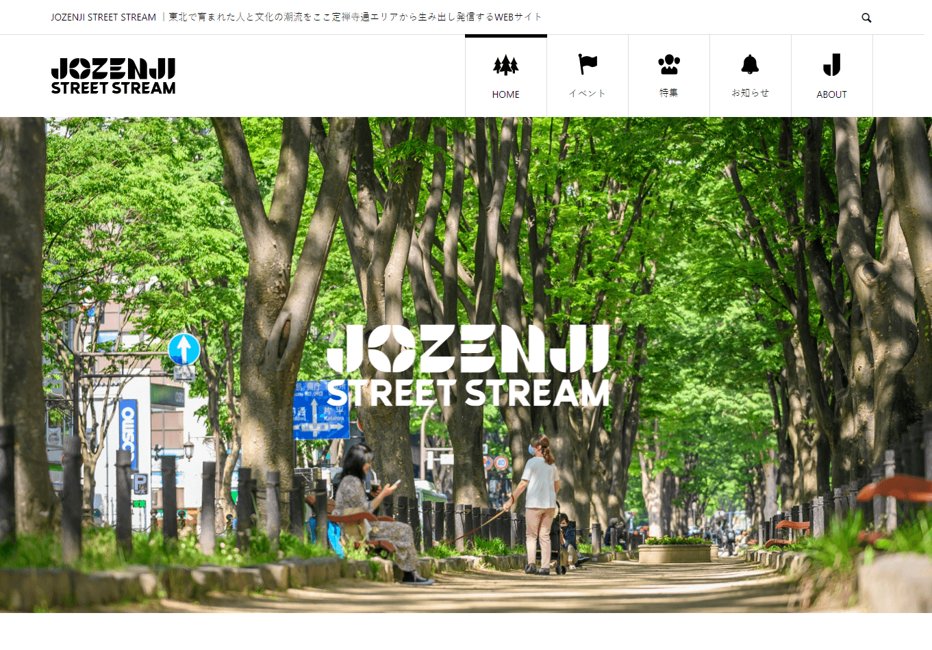 定禅寺通活性化検討会では、「杜の都・仙台」を象徴する定禅寺通エリアの魅力を効果的に発信していくために、ウェブサイト「JOZENJI STREET STREAM―定禅寺通から新たな潮流を―」を開設しました。このサイトは、「定禅寺通エリアブランディングプロジェクト」の一環として、戦略的な情報発信や、来年度実施予定の大規模社会実験に向けた新たなアクティビティの創出等にあたり立ち上げたものです。