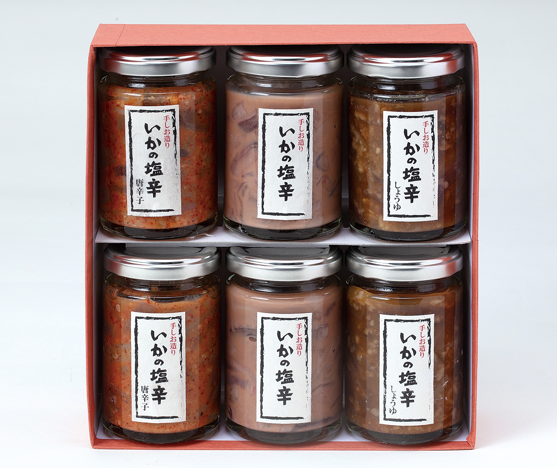 商品名 :手しお造り いかの塩辛シリーズ 定番キモ入り、しょうゆ味、唐辛子味