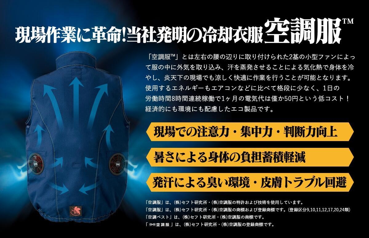 「空調服」は、株式会社セフト研究所・株式会社空調服の商標および登録商標です。(登録区分9,10,11,12,17,20,24類)