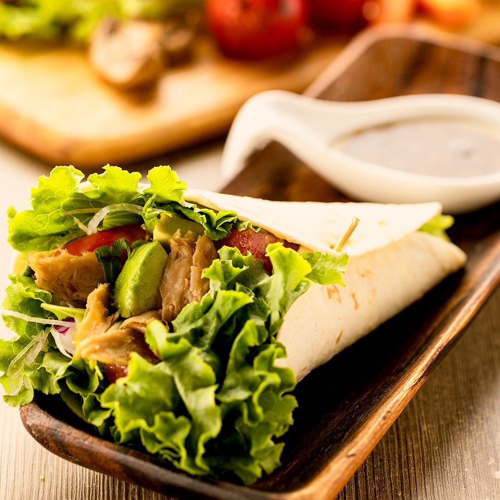 ●フェイクミートとトマトとアボカドのサラダトルティーヤ 580円