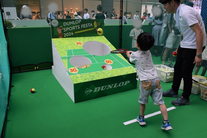 住友ゴムグループの(株)ダンロップスポーツマーケティング(社長:木越浩文)は、2024年5月25日(土)、26日(日)の2日間、「二子玉川ライズ ガレリア」(東京都世田谷区)のメインストリートに開放感のある芝生空間を造作し、ゴルフ・テニスをもっと身近に感じていただけるイベント「DUNLOP SPORTS FESTA~緑の上でゴルフ・テニスを楽しむ時間~」(参加費無料)を開催しました。パターゴルフ体験、スナッグゴルフ体験、スリーショットテニス(テニスラケットを使用した球入れ)、ゴルフ・テニスのワークショップの体験者数は延べ約4,200人、ステージイベントを含むと約5,420人にご来場いただき、大盛況に終わりました。