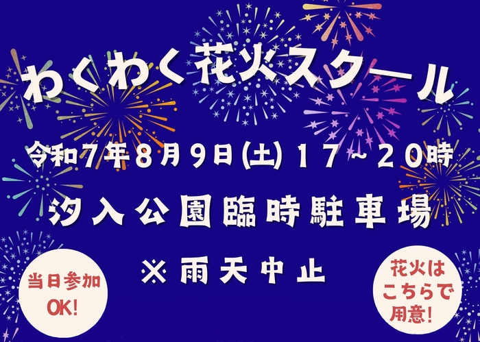 都立汐入公園にて、夏ならではの体験イベント「わくわく花火スクール IN 汐入公園」を開催いたします。