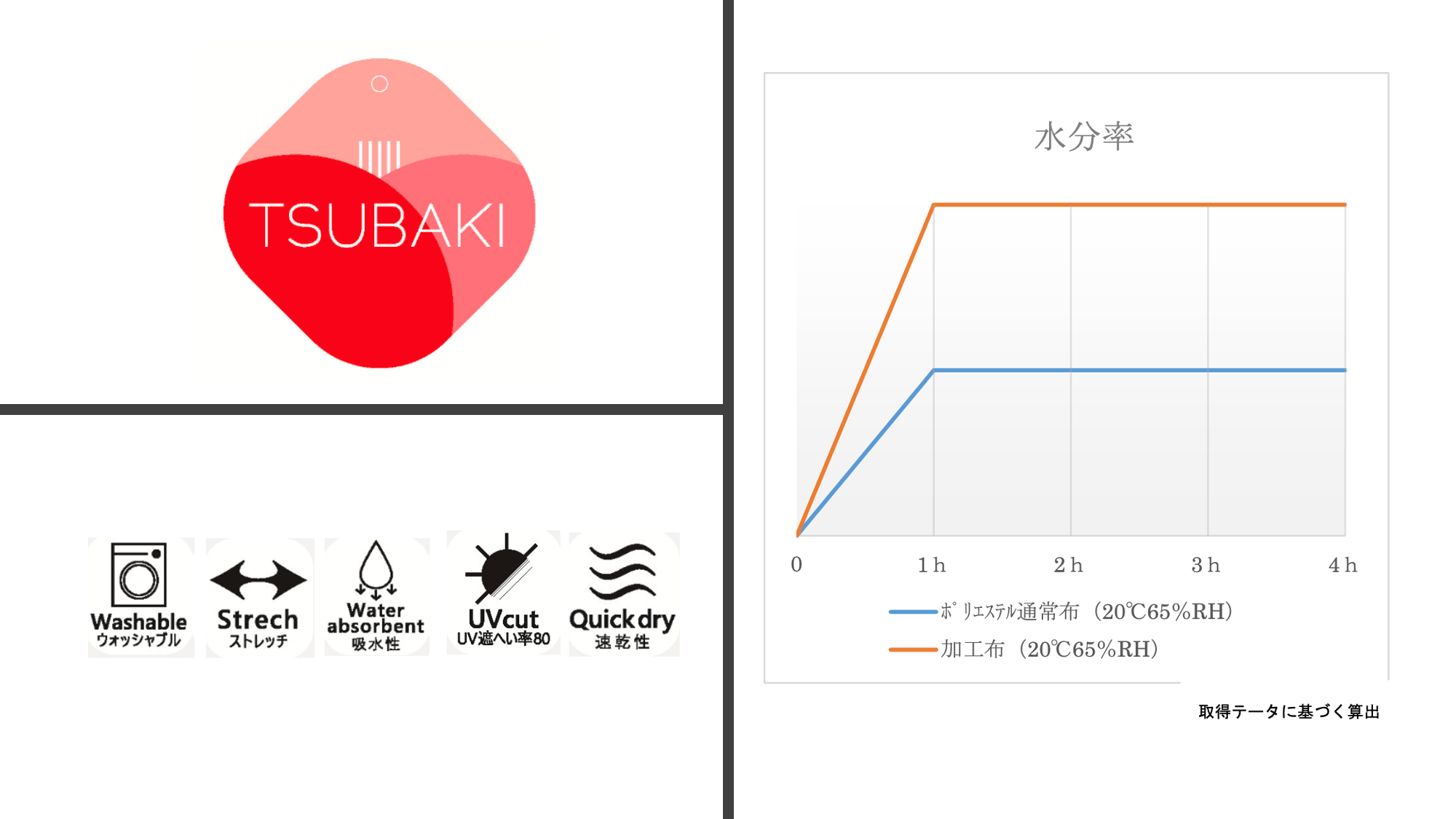 素材内面生地:ベージュ色 椿オイル保湿加工 ポリエステル 100%