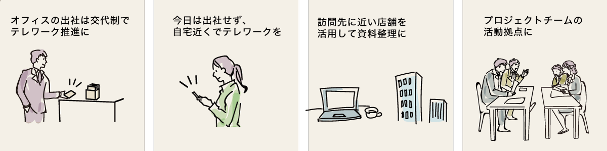 「より働きやすい、未来を」をコンセプトに、東京を中心に、関東、東北、北陸・甲信越、東海・近畿、中国・四国、九州・沖縄、フィリピン(セブ、マニラ)などにコワーキングスペースのネットワークを展開。すべての働く人たちの身近な場所に快適なワークスペースをつくり、場所にとらわれない働き方ができる未来を築いています。