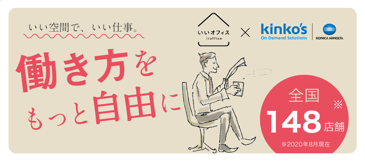 オンデマンドによるプリントソリューションサービスを提供するキンコーズ・ジャパン株式会社(所在地:東京都港区、代表取締役社長:名取 久知、以下 キンコーズ)は、コワーキングスペース事業を展開する株式会社いいオフィス(所在地:東京都台東区、代表取締役社長:龍﨑 宏、以下 いいオフィス)と提携し、国内148店舗*1のコワーキングスペースが利用できる『いいオフィス法人プラン』の販売を2020年8月11日より開始します。