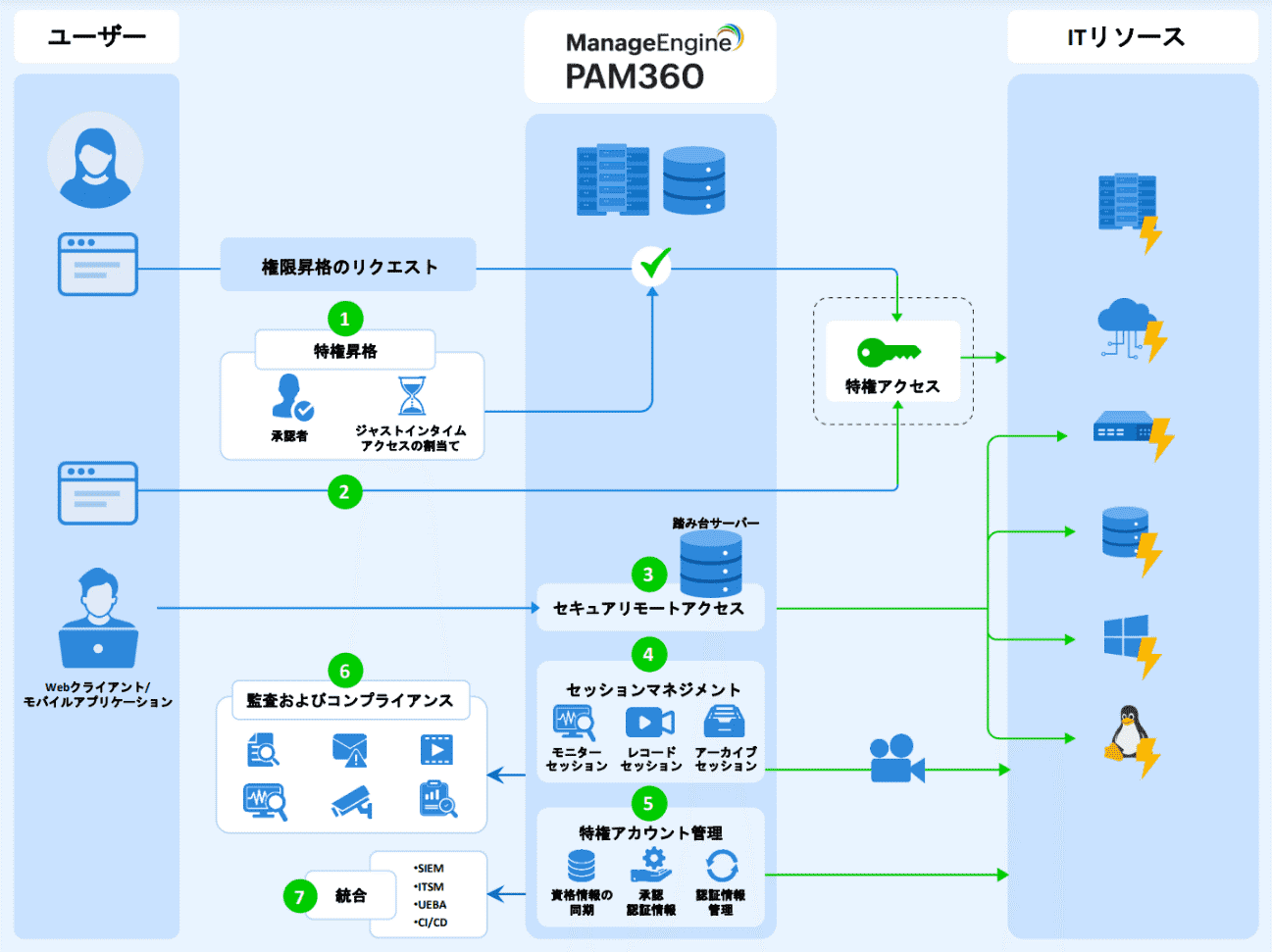 *PAM360の機能の一部はManageEngine他製品との連携で実現しているものがございます。