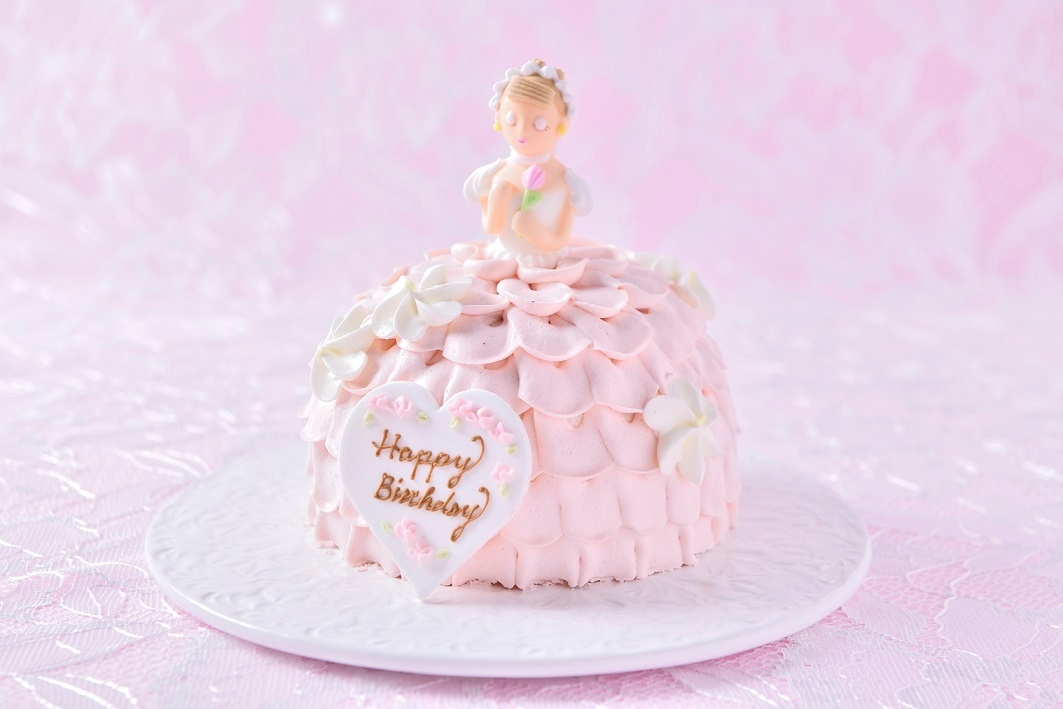 「スイートレディ」は、いちごのピューレで色づけたピンク色の生クリームをドレスに見立てて絞り、華やかで気品あふれるデコレーションケーキに仕上げました。ドレス部分はジューシーで甘ずっぱい、いちごとラズベリーをコクのある生クリームと一緒にサンドしたショートケーキで、ふんわり厚みのあるスポンジは愛らしい見た目に反して食べ応えもあります。