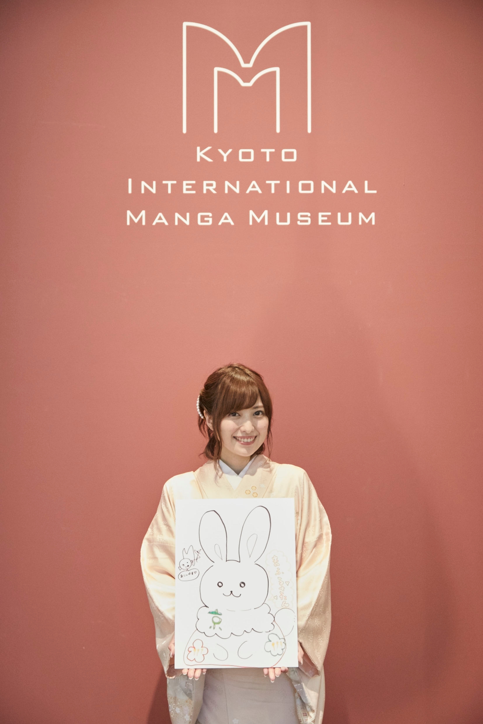 記者会見会場では、京都市長をはじめ、実行委員会のメンバーと共に『京まふ』応援サポーターの「佳村はるか」さんも京友禅の着物で参加し、創業150年を超える、京都で和菓子を製造、販売をする「伊藤軒」とのコラボレーションによる「まふうさたん」飴細工が初披露されました。