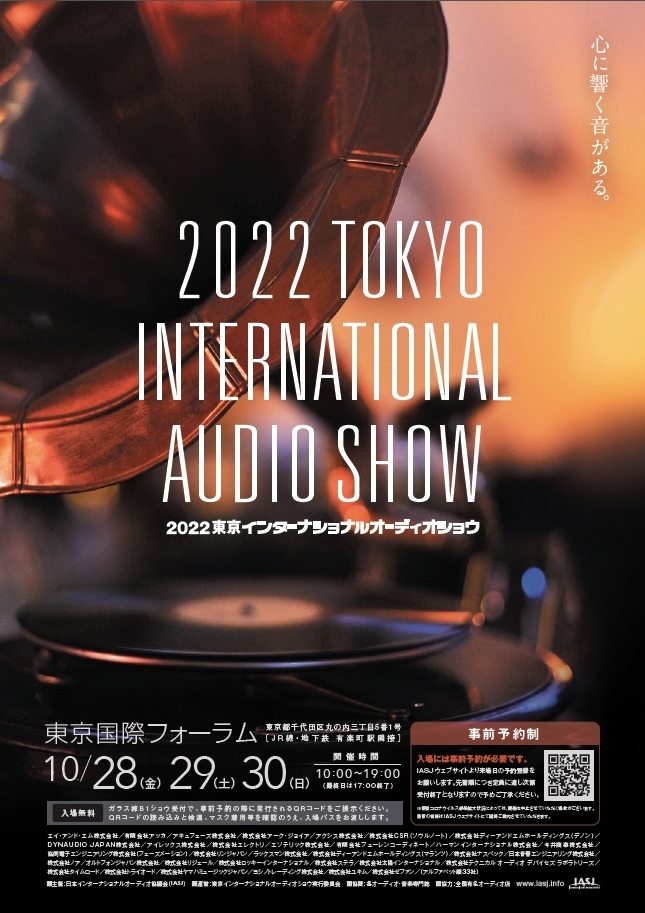 日本インターナショナルオーディオ協議会は2022年10月28日(金)~30(日)の3日間、東京国際フォーラム(東京都千代田区)にて「2022 東京インターナショナルオーディオショウ」を開催いたします。アナログの持つ温かさや深みから、ハイレゾ音源が繊細に再現する臨場感や立体感まで、世界最高峰のオーディオが奏でる、時代と世代を超えて心に響く音を体験できる年に一度の祭典です。ぜひ会場へお越しいただき、その深い味わいをご堪能ください。なお今年も、新型コロナウイルス感染症対策のため事前予約制とさせていただきます。ご予約は2022年9月12日(月)よりIASJオフィシャルサイトにて受付開始いたします。