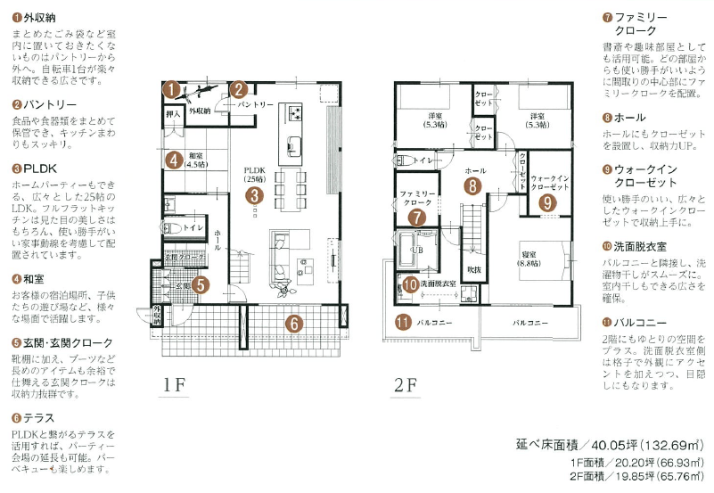 小学1年生から中学3年生の間に子供の持ち物は10.6倍に増えるといったデータもあり、それを受けて2階中央部に誰もが使えるファミリークロークを用意しました。入居したてで荷物がまだ少ない時は、書斎、パソコンルーム、音楽部屋、コレクションルームと趣味部屋としての活用することもできます。