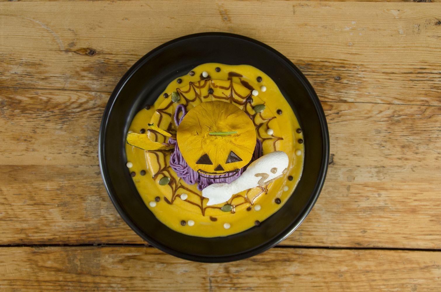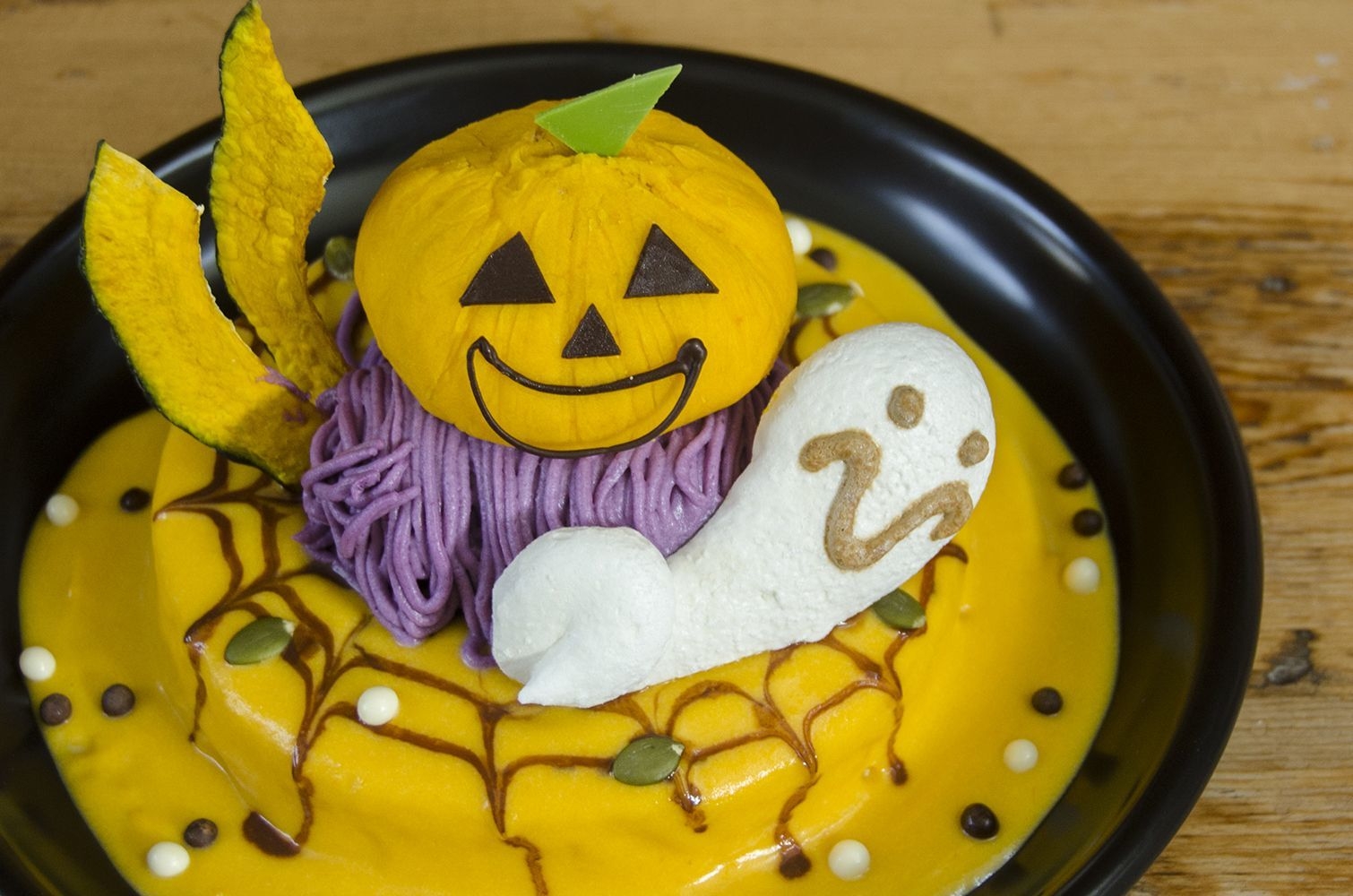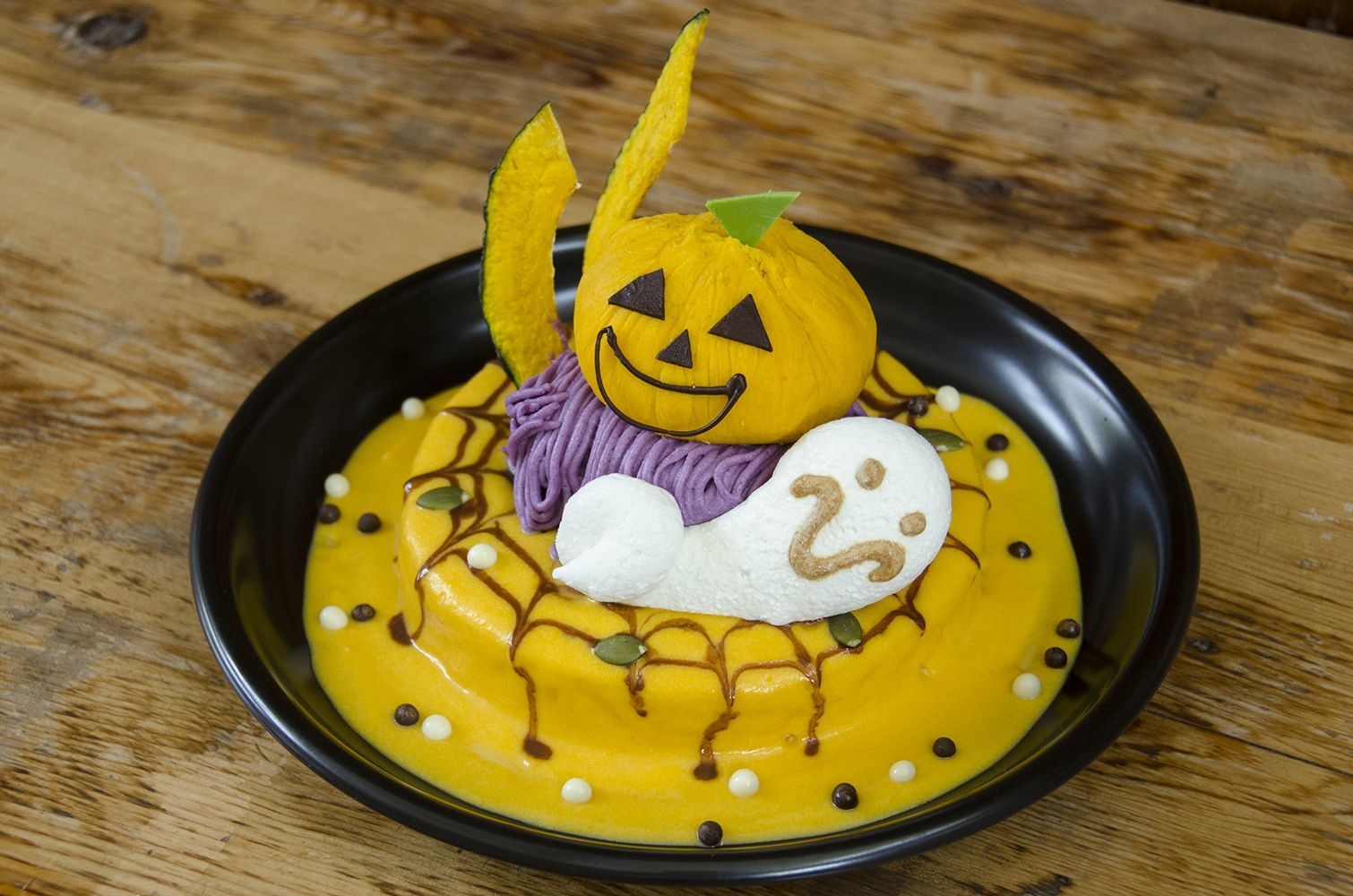 ジャックが主役のハロウィンパンケーキが今年も登場!アクイーユ自慢のしっとりパンケーキに濃厚なかぼちゃのソースをトッピング。たっぷり紫いものクリームの中にはバニラアイスが!ゆらゆらメレンゲゴーストやクモの巣模様のデコレーションで、見た目も楽しくてかわいいパンケーキでハロウィン気分をお楽しみください。
