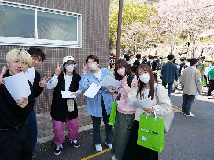 キャンパスににぎわい戻る! 4月4日は岡山理科大学の新入学生オリエンテーション。岡山キャンパスでは芝生広場を中心にサークル勧誘の列ができ、あちこちで新入学生たちのフレッシュな笑顔が弾けました。この日の模様を写真グラフで紹介します。