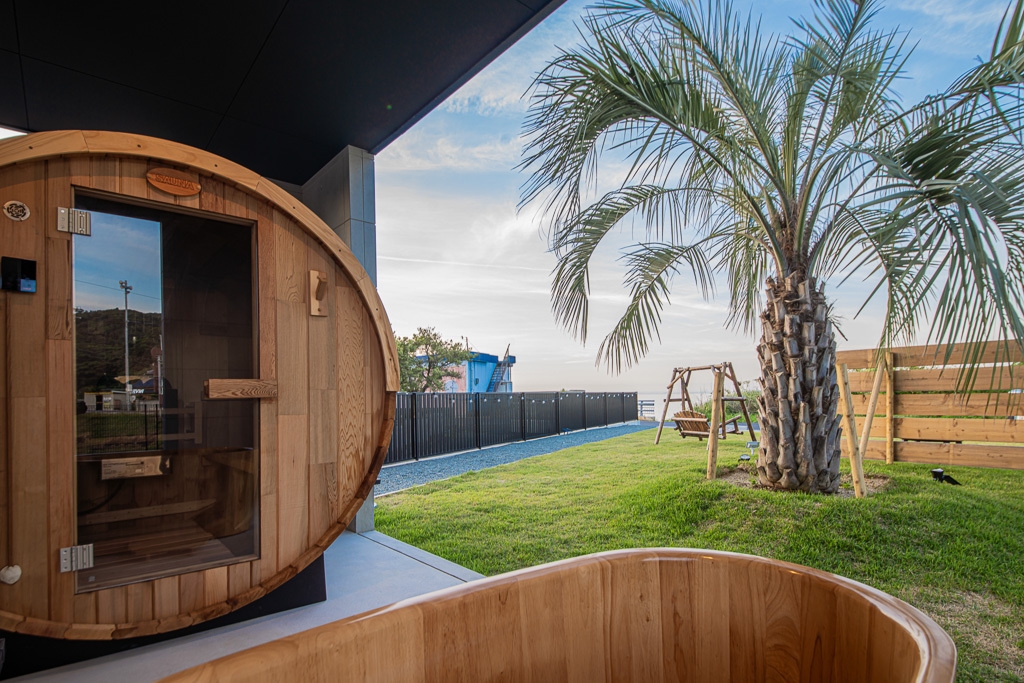各棟にフィンランド式バレルサウナが完備されており、いつでも利用し放題です。ロウリュでストレスを緩和させリラックスした時間をお過ごしいただけます。