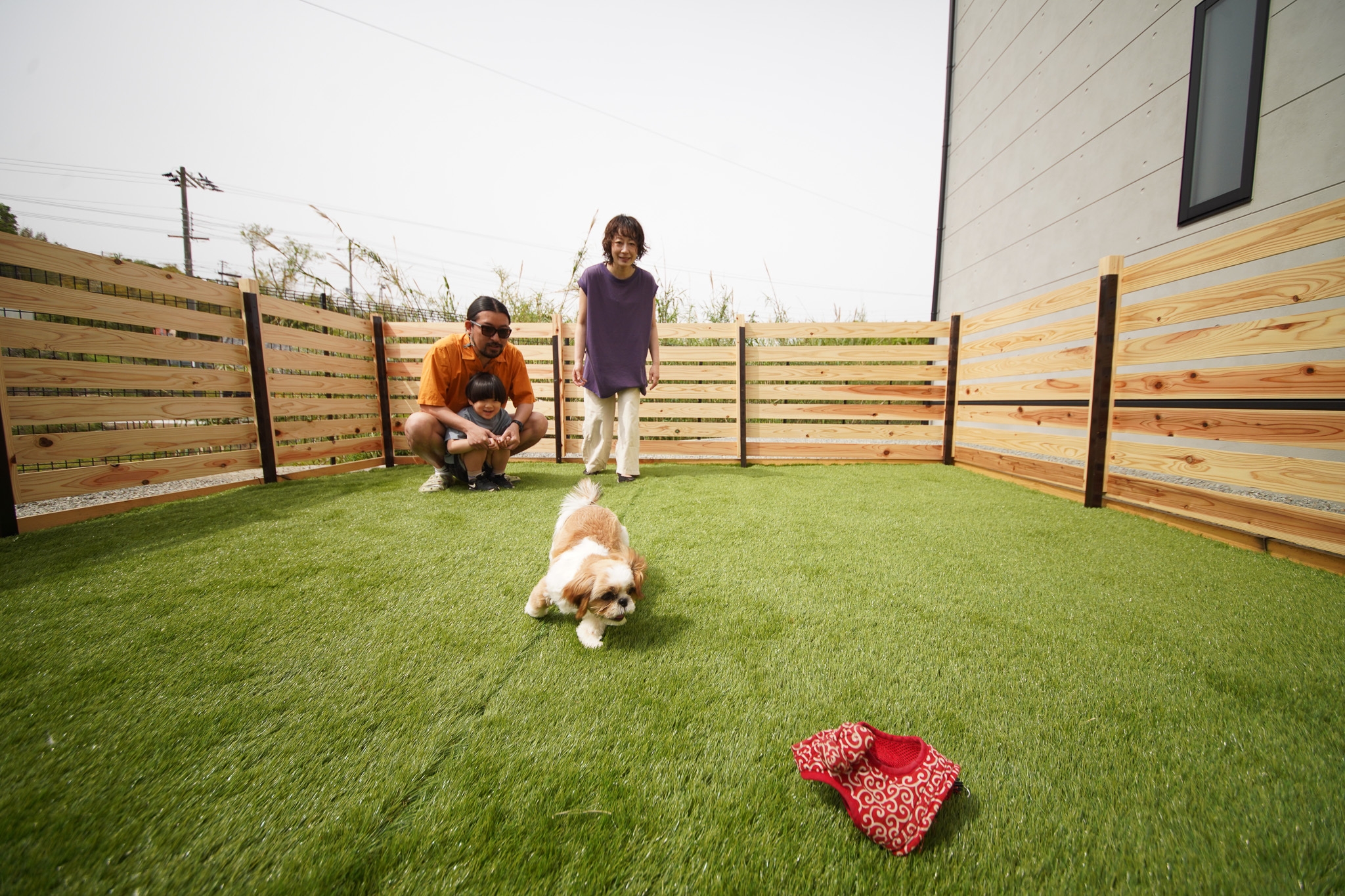 PrivateVilla8は2棟が隣接しており、1棟では小型犬が一緒に宿泊が可能で芝生のプライベートドッグランも併設しています。