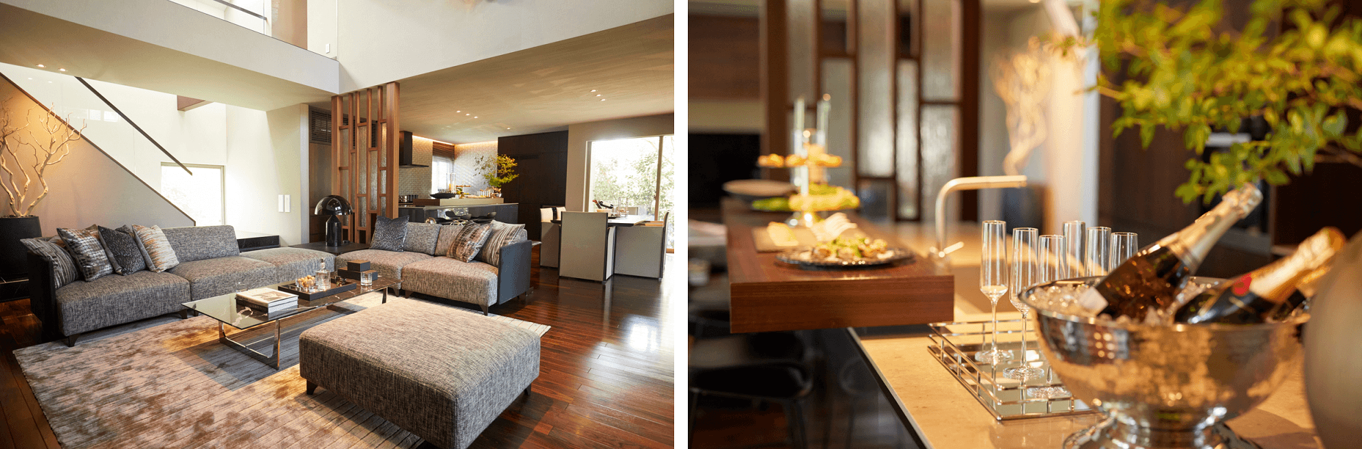 この度、「静」「優」「凛」「暖」「艶」「奏」から成る6つの感性フィールドに連動したスタイルにモデルハウスをリニューアルしました。これはlife knit designを体現した1棟目のモデルハウス「駒沢シャーウッド展示場 HUE(ヒュー)」に続き、初めて各6つの感性フィールドを体現したモデルハウスになります。